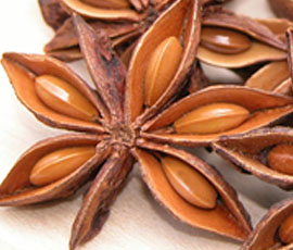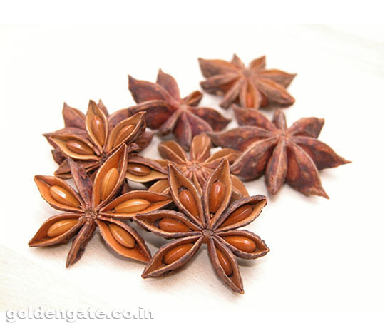 The star-shaped spice originated in south China and posses licorice-like flavour and is called by the name of 'chakra phool' in India. Because of its strong, delightful fragrance, it is mostly used in biryanis, chicken, sea food and other vegetarian dishes.
